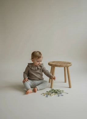 Ribbed Baby Top with Ruffle Neck – Brown