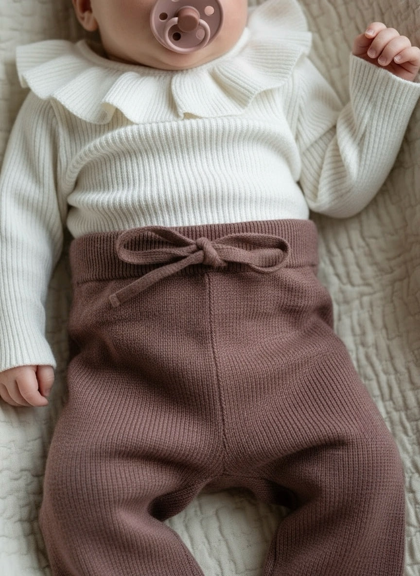 Our Wide Leg Baby Trousers are crafted from 100% cotton for comfort and breathability all year round. The relaxed knit design ensures easy movement, while the true to size fit means no guesswork for growing little ones. Available in 5 carefully curated shades, these trousers pair effortlessly with any of our tops, cardigans, or sweatshirts, perfect for mixing and matching across seasons. From newborns (0–3 months) to confident walkers (6–7 years), every age is covered in style and softness.
